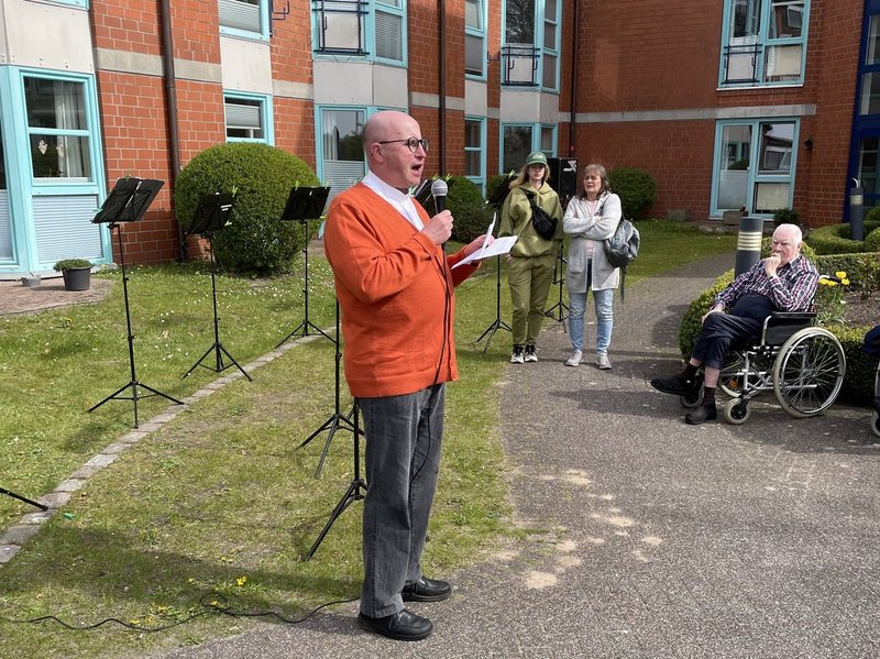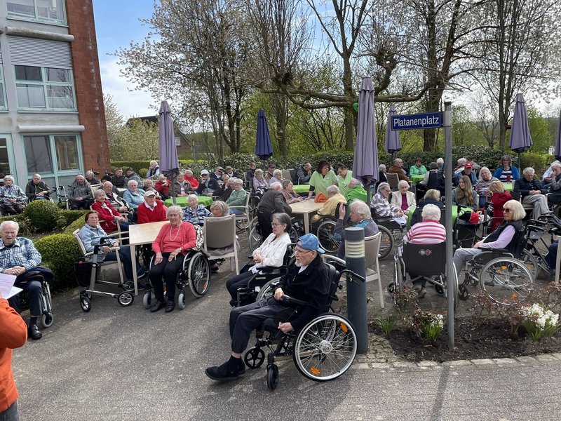 Mit strahlenden Sonnenschein wurden die Bewohner/-innen auf dem Platanenplatz begrüßt.