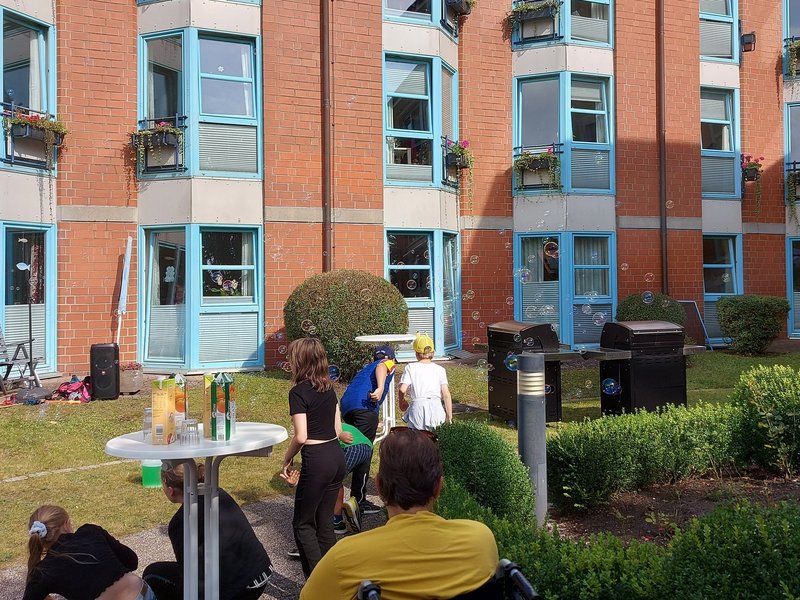 Das Haus St. Anna kennenlernen, Seifenblasen machen und danach bei Live-Musik grillen, klang für sieben Kinder/Jugendliche so attraktiv, dass sie sich über das Haus der Jugend angemeldet hatten, zu uns anlässlich des Ferienprogrammes zu kommen.