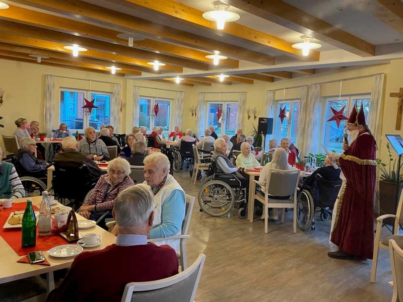 Lieber guter Nikolaus, höre doch, wir machen dir Musik! Nach den Herausforderungen der letzten Monate liegt es uns besonders am Herzen unseren Bewohner/-innen eine besinnliche und freudige Adventszeit zu bescheren. Daher haben wir uns sehr gefreut, den Spielmannszug am 05.12.2021 bei uns auf dem Platanenplatz begrüßen zu dürfen. Und auch der Nikolaus persönlich (dargestellt von Herrn Laubacher) gestaltete am 06.12.2021 einen musikalischen Abend im St. Anna Saal. Die Bewohner/-innen waren mit viel Freude dabei und genossen die Musik.