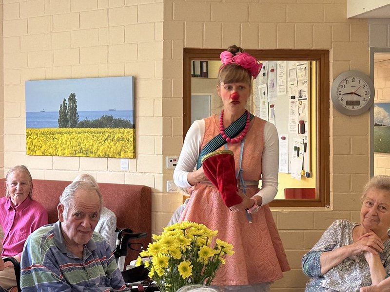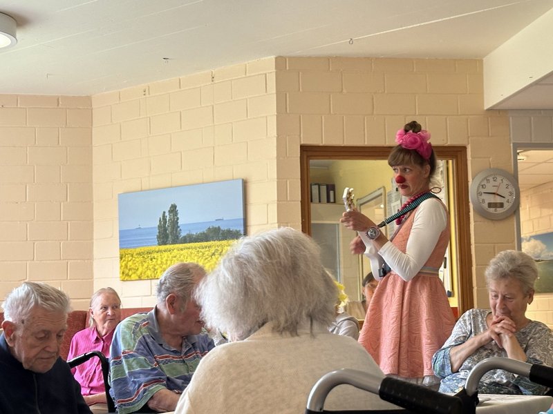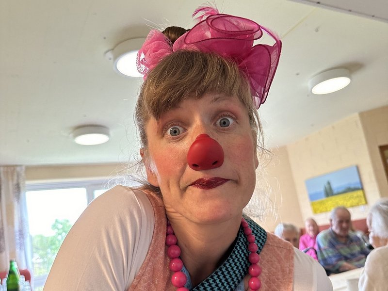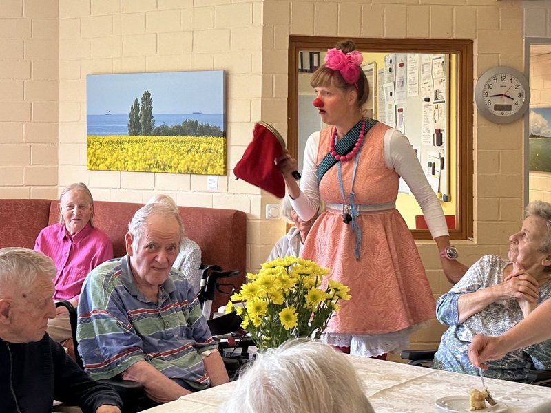 Diese Überschrift hat „Lotte Stengel“ in wunderbarerweise mit Leben gefüllt. Sie trat nämlich als Clown bei uns im Haus auf und brachte die Bewohnerinnen und Bewohner zum Schmunzeln, sang mit Ihnen und konnte einen Zugang schaffen, der von einer unheimlichen Herzlichkeit geprägt war.
