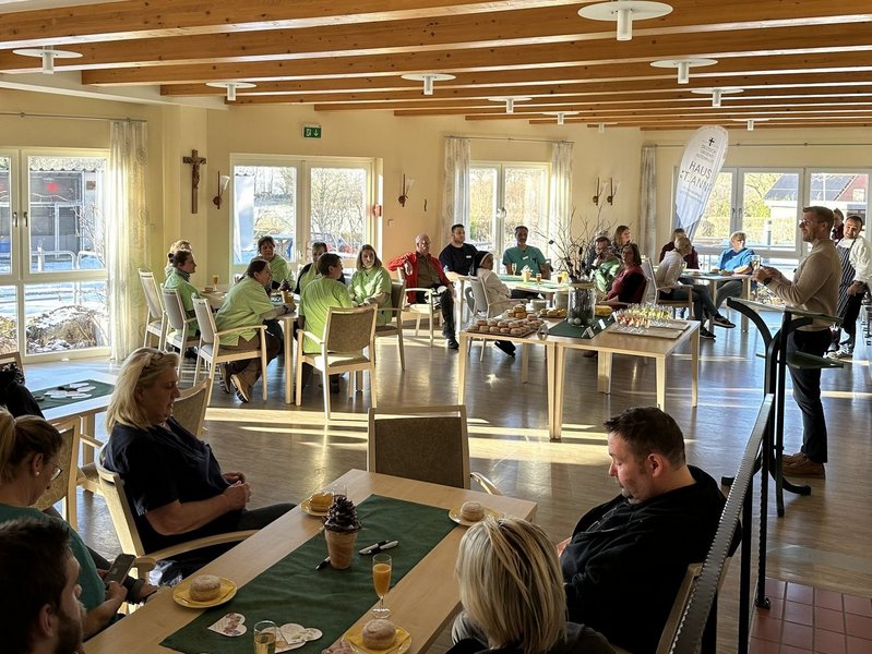 Bei leckeren Berlinern suchte Herr Sievert noch das Gespräch mit den Mitarbeitenden und wir formulierten auf Vorlagen, was für uns das Arbeiten im St. Anna ausmacht, um uns auch in herausfordernden Momenten daran erinnern zu können.