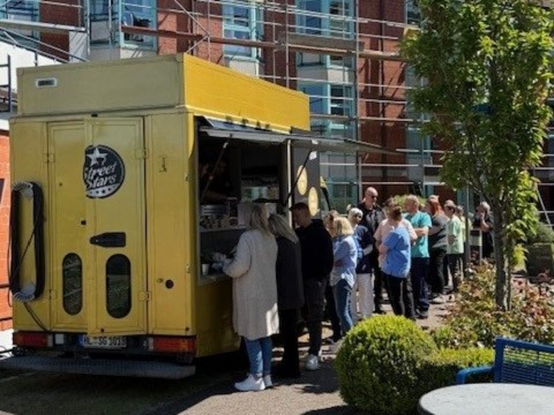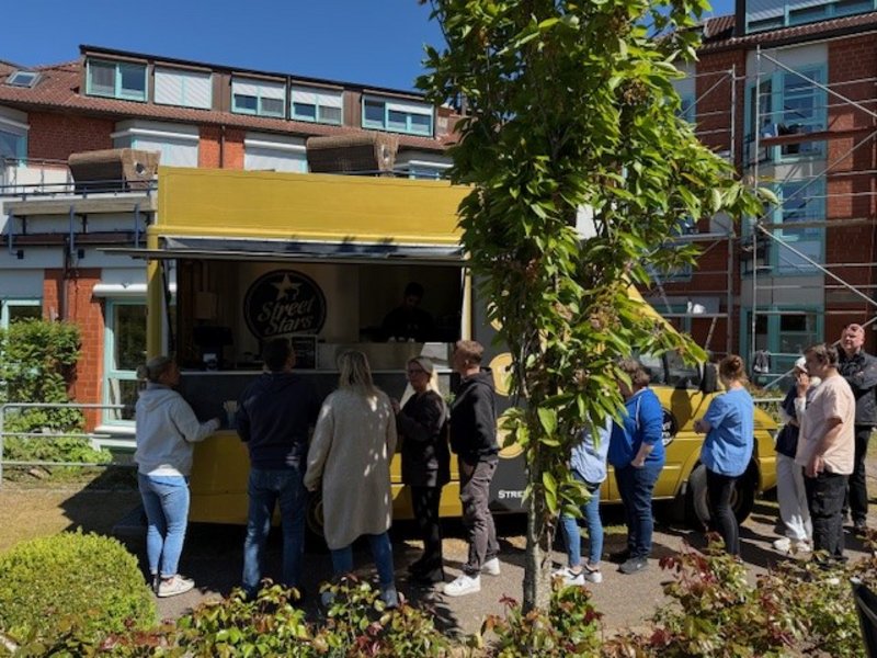 So hat sich das St. Anna für diesen Tag ein ganz besonderes Dankeschön für die Kolleginnen und Kollegen einfallen lassen. Zur Mittagszeit stand plötzlich im Garten ein Food-Truck mit einer leckeren Auswahl an Burgern, dazu Pommes und Softgetränken. Einrichtungsleiter Marco Sievert begrüßte die Kolleginnen und Kollegen aller Bereiche - denn gute Pflege funktioniert nur in einem multidisziplinären Team – und erzählte die Hintergründe zu dem Tag der Pflege und dankte auf diesem Wege für den täglichen Einsatz mit Herz und Verstand. Danach gab es Zeit zum Schlemmen und für einen schönen Austausch im Garten, unter Kollegen.