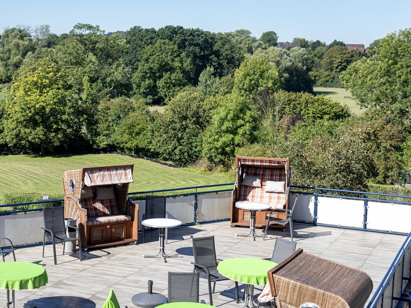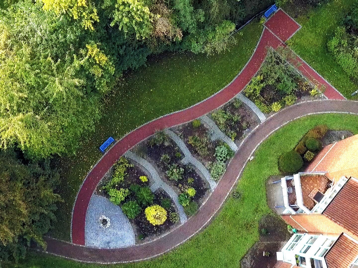 Besonders stolz sind wir auf unseren großen Park mit Spazierwegen, Ruheplätzen und dem Bibelgarten. Hier wachsen Pflanzen, die in der Bibel Erwähnung finden. Genießen Sie den Blick in die Natur von unserer Terrasse mit großer Vogelvoliere oder erobern Sie auf der Dachterrasse einen unserer Strandkörbe.
