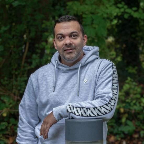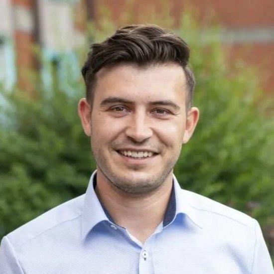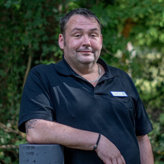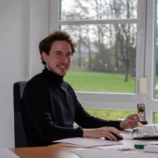 Quartiersmanager Frederik Lauwen am Schreibtisch sitzend lächelt er dem Betrachter zu